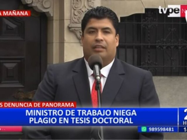 En declaraciones para la prensa, el titular del MTPE aseguró que su trabajo de investigación no contiene plagio y descartó renunciar a su cargo en el Ejecutivo pasa el informe revelador del dominical conducido por Mávila Huertas.
