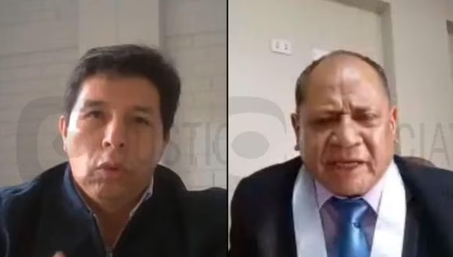 El expresidente Pedro Castillo reapareció de manera virtual durante una audiencia del Poder Judicial y lo hizo junto a su nuevo abogado, quien se olvidó el nombre del expresidente y los delitos por los que se le acusa.