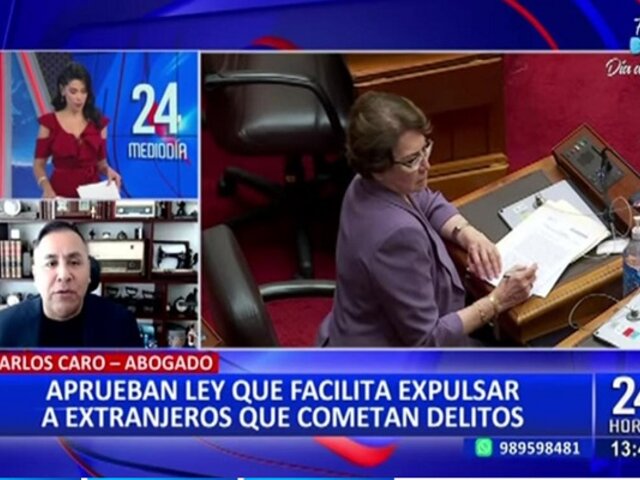 El abogado penalista Carlos Caro en entrevista con 24 Horas se manifestó acerca de la ley que faculta expulsar a extranjeros que comentan delitos en el país y de la reducción del monto mínimo para que una falta sea considerada como hurto.