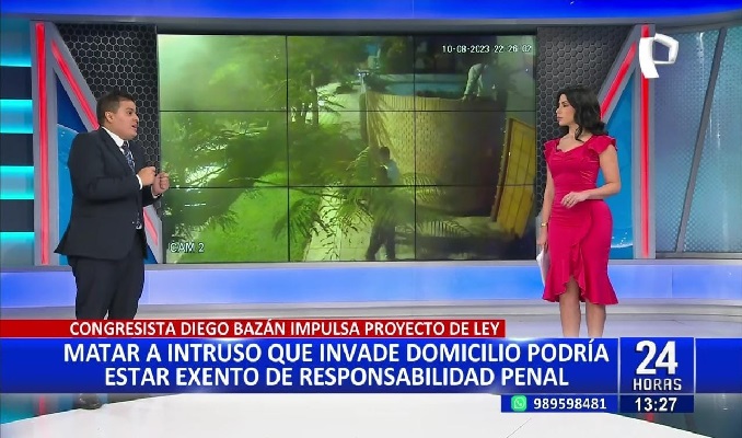 El congresista de Avanza País, Diego Bazán, explicó su Proyecto de Ley que busca liberar de responsabilidad a una persona que mate a cualquier invasor que ingrese a un domicilio, como extensión a la ley de legítima defensa.