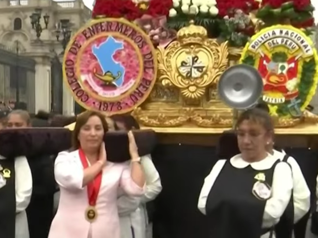 “Pido calma, serenidad, que el Perú se siga desarrollando en unidad con todos los peruanos. Necesitamos estar unidos para sacar el Perú adelante”, sostuvo la jefa de Estado al terminar de cargar una de las andas.
