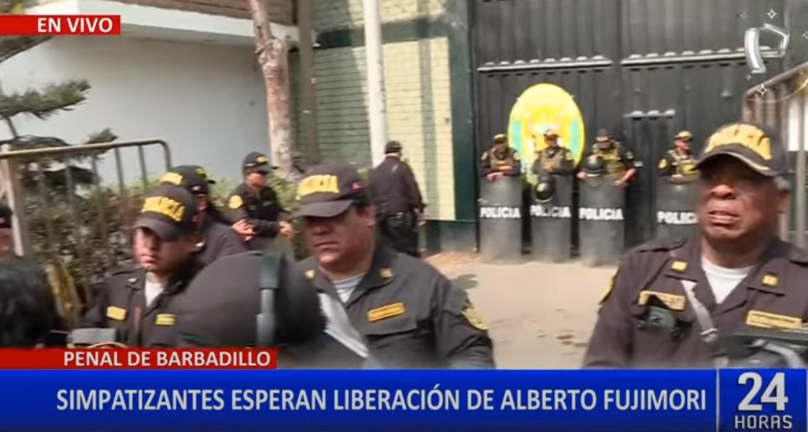 Decenas de simpatizantes de Alberto Fujimori se congregaron a las afueras del penal de Barbadillo, ubicado en el distrito de Ate, con la esperanza de que el expresidente sea puesto en libertad en las próximas horas.