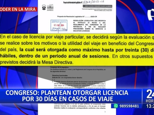 Congreso: Plantean otorgar licencia por 30 días en casos de viaje