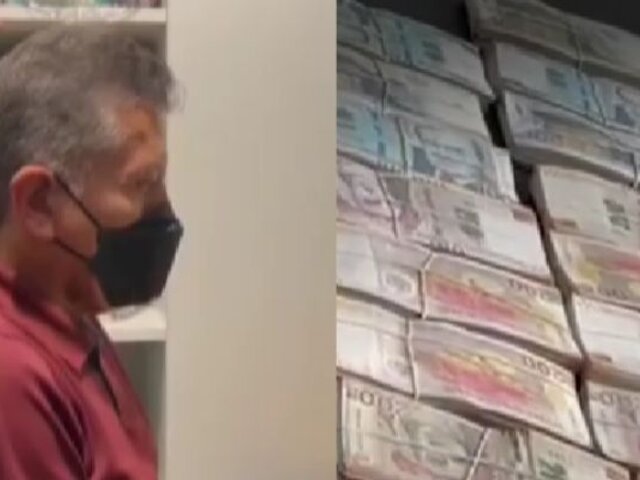 El exfuncionario de Provías Descentralizado estuvo presente durante la intervención y se le observa portar una mascarilla negra en lo que el personal de la Fiscalía contabiliza el dinero.