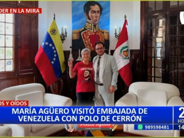 La congresista de Perú Libre, María Agüero, causó revuelo en su última visita a la Embajada de Venezuela en nuestro país, donde acudió con un polo alusivo al líder de su partido y prófugo de la justicia, Vladimir Cerrón.