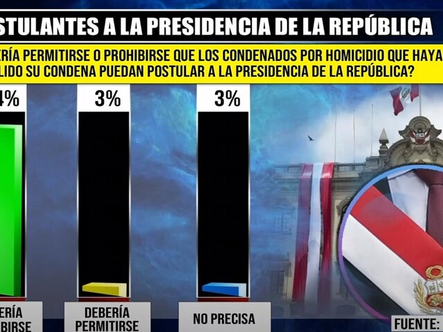Los resultados obtenidos de una muestra representativa indicaron que el 94% cree que debería prohibirse completamente que estas personas se postulen en las elecciones presidenciales, mientras que solo un 3% está a favor de permitir su participación. El porcentaje restante no proporcionó una respuesta concreta.