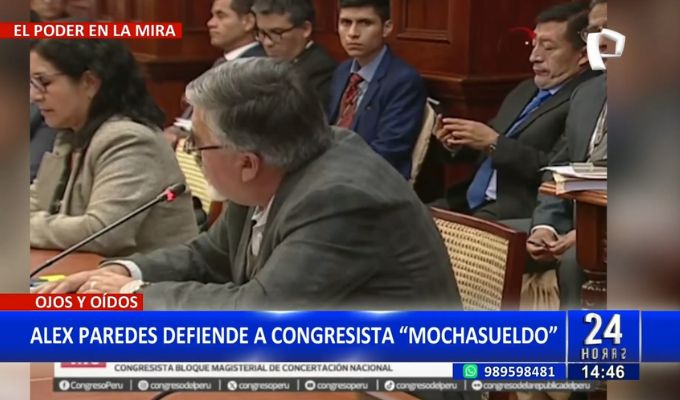El congresista del Bloque Magisterial, Álex Paredes, salió en defensa de su colega, Katy Ugarte Mamani, quien fue suspendida por 60 días, luego que la Comisión de Ética aprobó el informe final que recomendada su suspensión por el caso "Mochasueldos".
