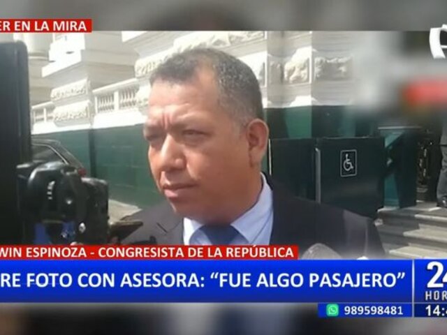 El congresista de Acción Popular, Darwin Espinoza, reapareció ante los medios para hablar sobre los cuestionamientos en su contra sobre un presunto intercambio de favores con su colega Kira Alcarraz (Podemos Perú).