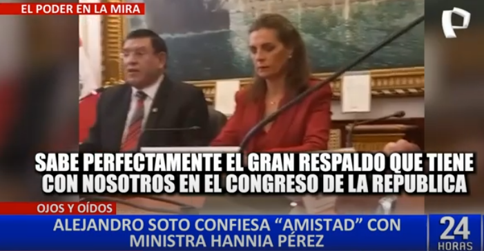 La ministra Hannia Pérez de Cuéllar, se presentó ante el Congreso de la República para ser interpretada en el pleno. Sin embargo, previo a ello tuvo una reunión con el presidente del Parlamento Alejandro Soto, quien tuvo palabras de logia para la ministra de Vivienda Construcción y Saneamiento.