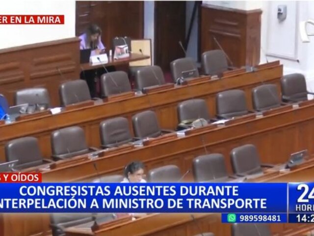 Durante la interpelación al titular del MTC, el hemiciclo de sesiones lucía prácticamente vacío. Algunos congresistas como Patricia Juárez, Jorge Montoya, José Cueto y José Williams, entre otros, se hicieron presentes, no obstante, la gran mayoría brilló por su ausencia.