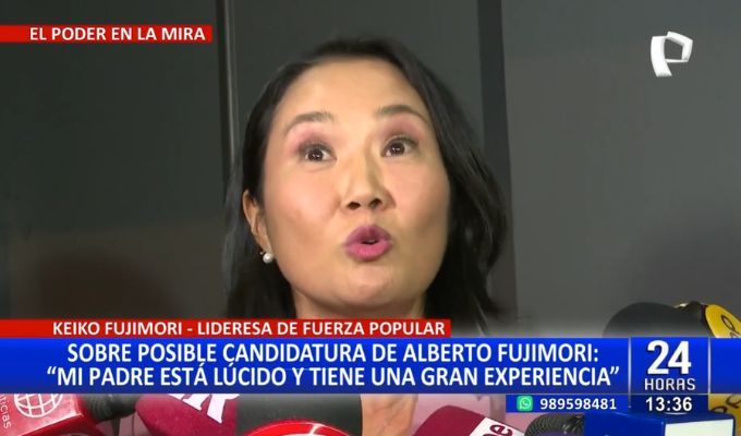 La lideresa de Fuerza Popular, Keiko Fujimori, se pronunció luego que su padre, el expresidente Alberto Fujimori, confirmó mediante una carta enviada en respuesta a un periodista del diario El Comercio, sus intenciones de postular nuevamente a un cargo de elección popular.
