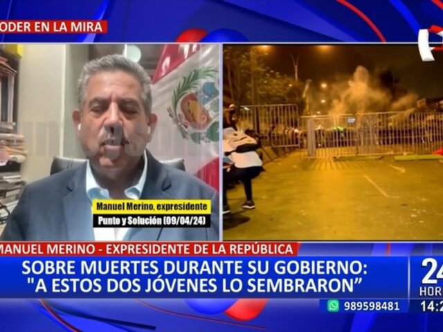 Durante una entrevista en el portal Punto y Solución, Merino se refirió a los dos jóvenes fallecidos durante el enfrentamiento con la policía en las avenidas principales del Centro de Lima. La exautoridad señaló que Inti Sotelo y Bryan Pintado habrían sido "sembrados".