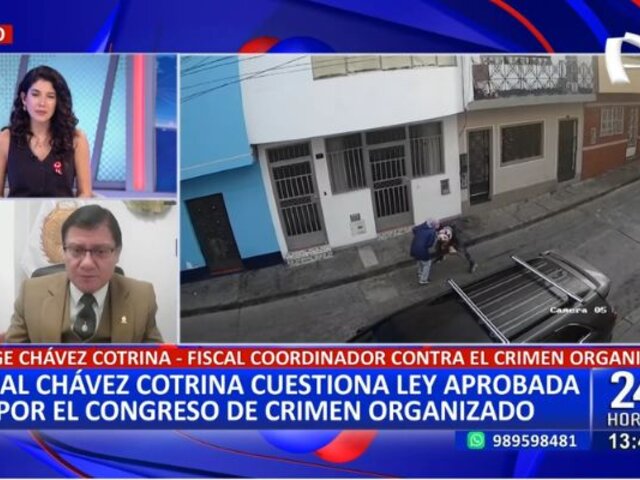 El fiscal coordinador contra el crimen organizado, Jorge Chávez Cotrina, se pronunció sobre la ley aprobada en el Congreso de la República, la cual establece cambios significativos a las leyes penales y algunas limitaciones a las investigaciones por casos de organización criminal.