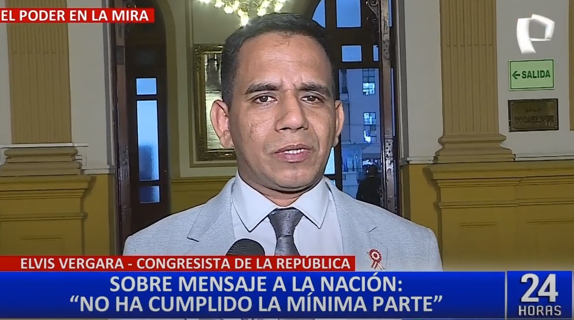 El parlamentario Elvis Vergara, señaló que, aunque la presidenta ha brindado mensajes a la nación muy sustanciosos, en la práctica no ha cumplido con lo prometido. "Frente a ello, no tenemos una buena expectativa", recalcó.