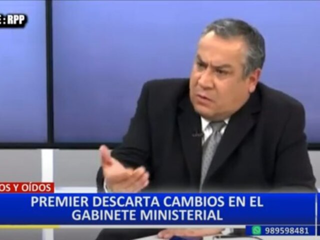 En entrevista para RPP Noticias, el jefe del Gabinete Ministerial manifestó que el Ejecutivo no tiene previsto hacer "cambios inmediatos" en ninguna de las carteras ministeriales.