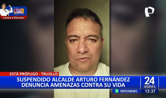 El suspendido alcalde de Trujillo, Arturo Fernández, quien se encuentra prófugo de la justicia desde hace diez días, denunció mediante un video a través de sus redes sociales, que viene recibiendo amenazas de muerte.
