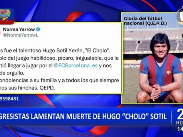 "Se nos fue el talentoso Hugo Sotil Yerén, "El Cholo". Símbolo del juego habilidoso, pícaro, inigualable, que le permitió llegar a jugar por el FC Barcelona y nos llenó de orgullo. Mis condolencias a su familia y a todos los que siempre seremos sus hinchas. QEPD", publicó en su cuenta de X.