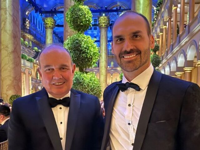El también líder de Renovación Popular publicó en sus redes sociales fotos de la cena de gala previa a la juramentación de Trump, en dicho evento, López Aliaga posó para las cámaras con diversos líderes políticos, como Eduardo Bolsonaro, diputado federal por el estado de Sao Paulo, Brasil.
