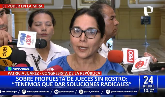 La congresista y primera vicepresidenta de la Mesa Directiva, Patricia Juárez, anunció que presentará un proyecto de ley para el retorno de los denominados "jueces sin rostro", en el sistema de justicia.