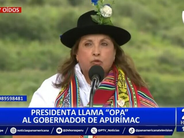 "Gobernador, lo voy a volver a decir con cariño, gobernador no sea opa pues, aproveche ahora que su paisana es presidenta. Hagamos algo por Apurímac, Apurímac que siempre ha llorado la atención de los anteriores presidentes y nunca se han compadecido de su llanto", dijo.
