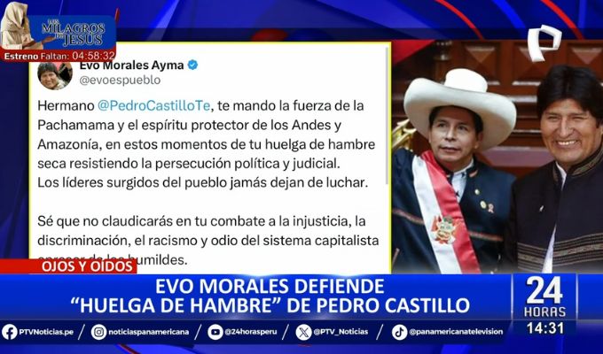 El expresidente de Bolivia, Evo Morales, se pronunció sobre la situación del exmandatario peruano, Pedro Castillo, quien viene acatando una huelga de hambre en rechazo al juicio oral en su contra por el fallido golpe de Estado del 2022.