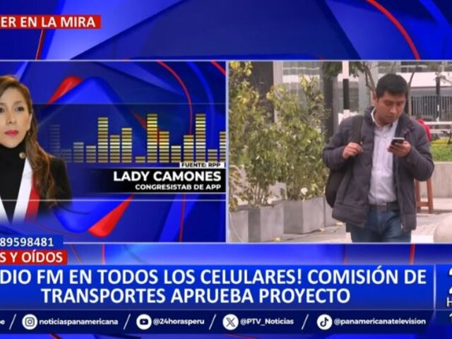 La congresista de Alianza Para el Progreso, Lady Camones, se pronunció sobre el proyecto de ley que viene impulsando, el cual propone obligar a las operadoras de telefonía móvil y a las empresas comercializadoras de celulares a habilitar la radio de frecuencia modulada (FM) en dichos dispositivos.