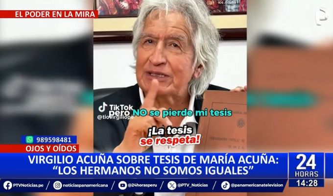 El exviceministro de Transportes, Virgilio Acuña, volvió a cuestionar a su hermana, María Acuña Peralta, tras el informe periodístico que reveló que las tesis de maestría y doctorado de su pariente "desaparecieron" misteriosamente.