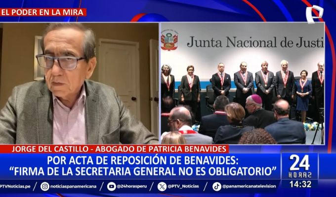 Jorge del Castillo, abogado de la exfiscal de la Nación, Liz Patricia Benavides, se pronunció luego que Panorama y la Unidad de Investigación de Panamericana Televisión revelaran en exclusiva el acta de la Sesión Plenaria Extraordinaria de la Junta Nacional de Justicia (JNJ), que ordena la reposición de su clienta como titular del Ministerio Público.
