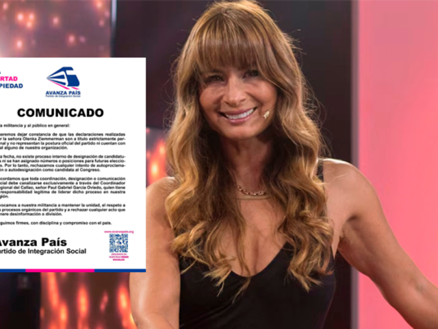 El partido político Avanza País, actualmente encabezado por el comunicador Phillip Butters, se pronunció para deslindar con claridad de recientes declaraciones realizadas por la conocida figura televisiva Olenka Zimmermann. “Las declaraciones realizadas por la señora Olenka Zimmermann son a título estrictamente personal y no representan la postura oficial del partido”, precisó la organización en un comunicado difundido este jueves. Con ello, se buscó dejar sin lugar a dudas que no hay respaldo institucional a una eventual candidatura promovida por la exconductora de televisión.