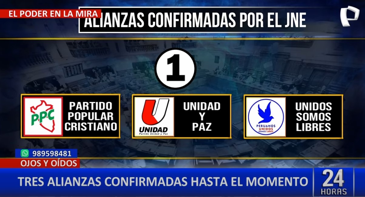 Hasta el momento, son tres las alianzas confirmadas que agrupan a siete partidos de los 43 inscritos en el registro electoral. No obstante, no se descarta que surjan más acuerdos, ya que el plazo de inscripción vence a las 11:59 p.m. de hoy lunes 1 de septiembre.