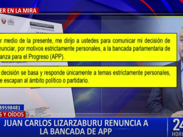 En la misiva difundida por el legislador, Lizarzaburu mencionó que su salida del grupo político se debe a razones individuales, dejando en claro que su partida no tiene ningún tipo de vínculo con la ideología de APP.
