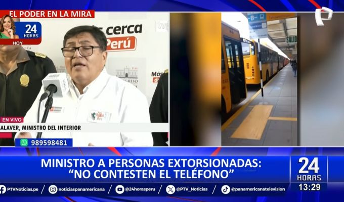En declaraciones a la prensa, el titular del Mininter exhortó a los transportistas a "no contestar" las llamadas de origen desconocido que reciban, como un forma de prevenir cualquier intento extorsivo por parte de criminales.