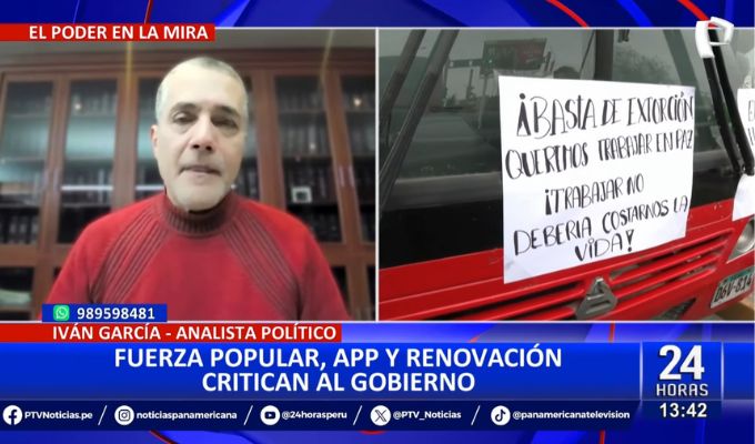 El analista político, Iván García, se pronunció sobre los comunicados emitidos por los partidos políticos Fuerza Popular, Renovación Popular y Alianza Para el Progreso, que respaldaron el último paro de transportistas en Lima y Callao y cuestionaron la inacción del Ejecutivo ante la ola de sicariato y extorsión.