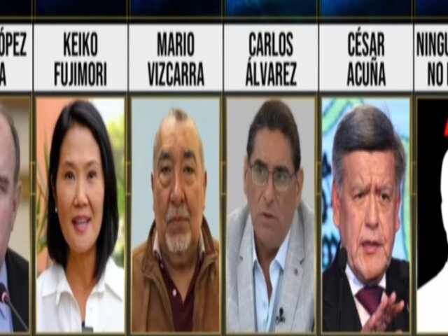 La tercera posición es para el hermano del expresidente Martín Vizcarra, Mario Vizcarra, quien alcanza un 7%. En la cuarta casilla se ubica Carlos Álvarez con un 4% de aceptación ciudadana, mientras que el quinto lugar lo cierra César Acuña con un 3%.