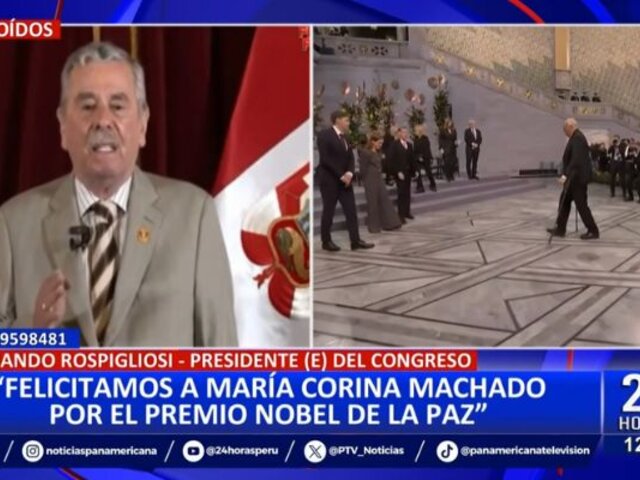 El congresista y presidente de la Mesa Directiva, Fernando Rospigliosi, se pronunció sobre la distinción que recibió la lideresa de la oposición venezolana, María Corina Machado, quien fue galardonada con el Premio Nobel de la Paz 2025.