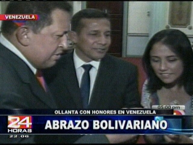Ollanta Humala es recibido con honores por el presidente Hugo Chávez en Caracas
