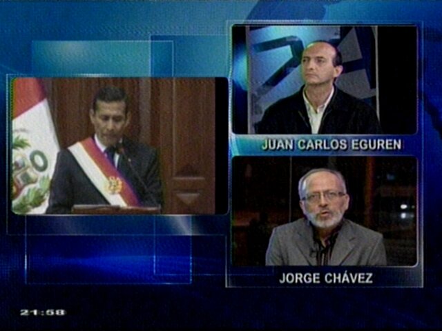 El congresista Juan Carlos Eguren, y el economista Jorge Chávez, fueron entrevistados por 24 Horas, ambos indicaron que el mensaje presidencial de Ollanta Humala es una extensión de las promesas electorales.