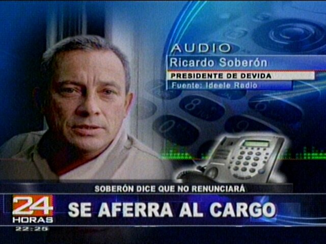 El cuestionado presidente de Devida Ricardo Soberón, expresó en IDL Radio que no renunciará a su cargo puesto que tiene el respaldo del presidente Ollanta Humala, y de su primer ministro Salomón Lerner.