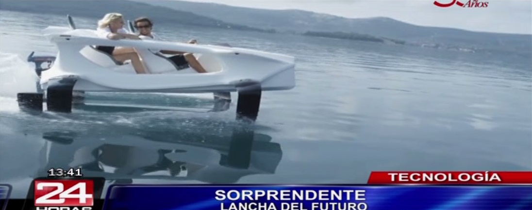 Quadrofoil podría ser la lancha del futuro, utiliza cuatro hidroplanos para elevarse del agua, no hace ruido y es respetuosa con el medio ambiente. Esta embarcación propulsada por un motor eléctrico da la ilusión de “volar” por encima del agua a velocidades de hasta 40 kilómetros por hora