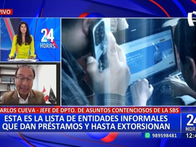 En una entrevista concedida a Paola Moreno en el programa 24 Horas Mediodía, Carlos Cueva, Jefe del departamento de asuntos contenciosos de la SBS, reveló la creciente preocupación acerca de los aplicativos de préstamos que prometen dinero fácil pero ocultan prácticas fraudulentas y amenazantes.