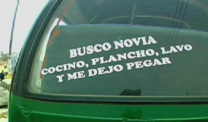 Rosario Victorio hizo un recorrido por diversas zonas y lo que pudo observar son frases como ‘Busco novia: cocino, plancho y me dejo pegar’ o ‘Este vehículo está protegido por mi mujer y rastreado por mi suegra’.
