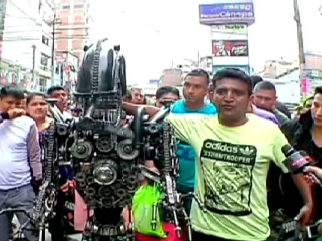 Junto a Janet Mori, este vecino de Ate Vitarte llegó hasta el corazón de Gamarra para exhibir sus productos, entre los que destacan un alíen tamaño real, así como una serie de vehículo: motos, carros, helicópteros, aviones y hasta pequeñas bicicletas. Realmente un lujo.