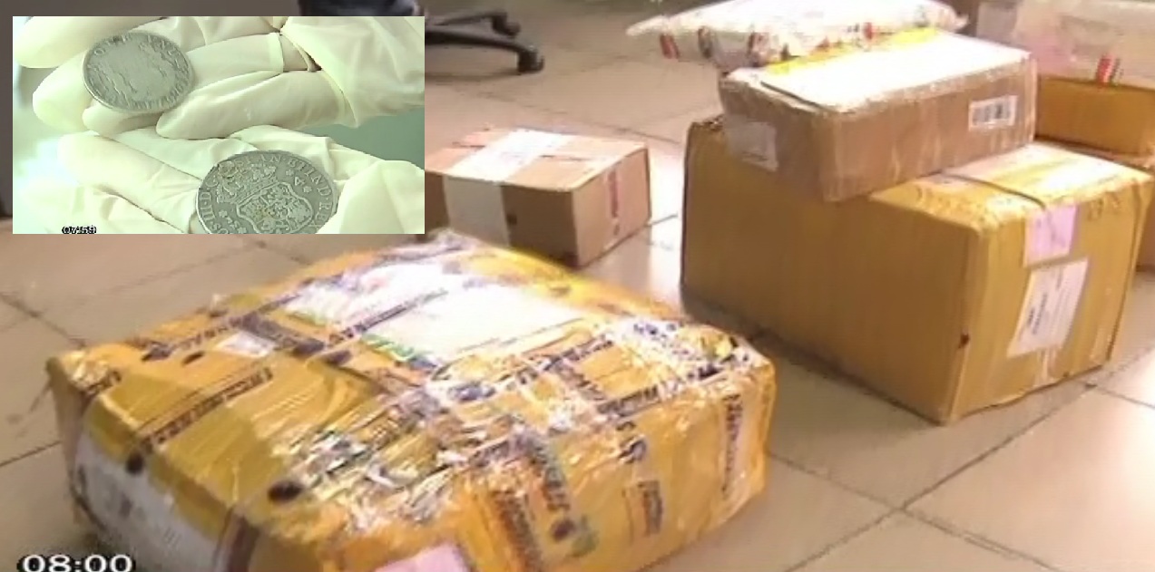 Unas monedas de la época virreinal, así como pinturas, fueron rescatados por la Policía Nacional del Perú cuando fascinerosos pretendían sacarlos del país y venderlos en el mercado negro de España.