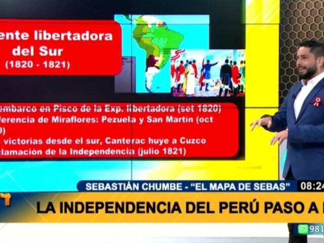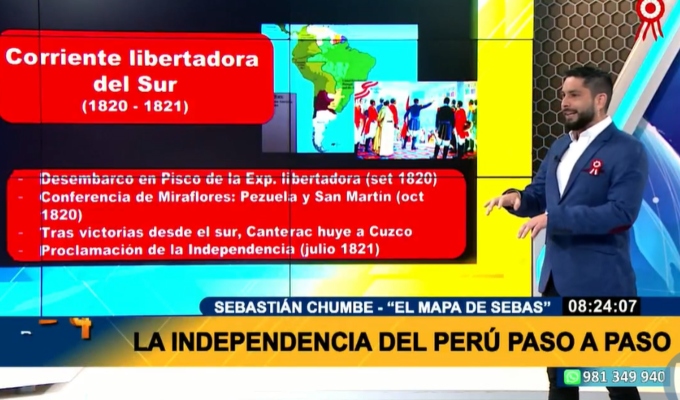El conocido youtuberSebastián Chumbe, creador del canal digital 'El Mapa de Sebas' visitó una vez más el set de Buenos Días Perú para explicar a la audiencia los hechos históricos que acontecieron y que llevaron a cabo el proceso de la Independencia de nuestro país, que este 28 y 29 de julio celebrará las Fiestas Patrias.