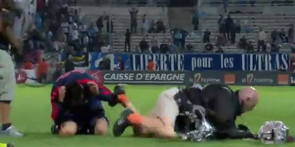 El futbolista argentino, Ezequiel Lavezzi, realizó una broma a un camarógrafo tras la victoria de su equipo el Paris Saint-Germain (PSG) de la liga francesa ante el Olympique de Marsella.