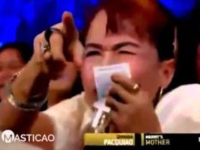 Manny Pacquiao recuperó su corona del peso welter, versión Organización Mundial de Boxeo (OMB), al vencer por decisión unánime al estadounidense Timothy Bradley, quien sufrió su primera derrota como profesional. Sin embargo, en la victoria del filipino mucho tendría que ver un llamativo ritual que realizó su madre durante el duelo. ¿La mamá de Pacquiao realizó brujería durante pelea vs. Bradley? Bueno, eso es lo que podría hacer pensar el video captado por los canales que transmitieron la pelea. Sucede que Dionisia Pacquiao, mientras se desarrollaba el encuentro, realizaba movimientos algo sospechosos desde una de las tribunas principales. Te dejamos el video de este insólito hecho. Estas y otras informaciones en el bloque deportivo de Buenos Días Perú.
