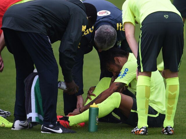El abanderado brasileño dio un susto a su selección al caer al suelo con dolores en el pie derecho, tras realizar una chalaca durante los entrenamientos de la ‘verdeamarelha’. La imagen hizo temblar a todo el pueblo carioca y es que Neymar es el llamado a ser el conductor que lleve a Brasila la gloria en esta Copa del Mundo. Al final de la práctica se descartó una torcedura de tobillo como se temía, disipándose de esta forma el susto que se apoderó del equipo anfitrión. Los entrenamientos terminaron sin más incidentes con la victoria del equipo titular por 4-0 con goles de David Luiz, Fred, Hulk y Marcelo. Después del entrenamiento, los dirigidos por Luiz Felipe Scolari se permitieron un "baño de popularidad" y fueron a saludar a las cerca de 200 personas que alentaron el equipo durante más de una hora. La ampliación de esta noticia y los resultados de los partidos amistosos previos al Mundial Brasil 2014 en el bloque deportivo de Buenos Días Perú.