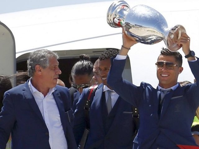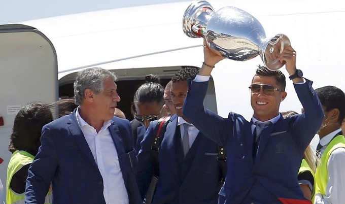 El equipo arribó a Lisboa liderado por el capitán Cristiano Ronaldo y el DT Fernando Santos, para festejar por todo lo alto.
