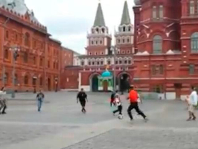 Vestidos con camisetas de la Selección Peruana jugaron una ‘pichanguita’ en la histórica plaza rusa. Ellos llegaron para disfrutar del Mundial Rusia 2018 y alentar a la ‘bicolor’ quien regresa luego de 36 años a una Copa del Mundo.