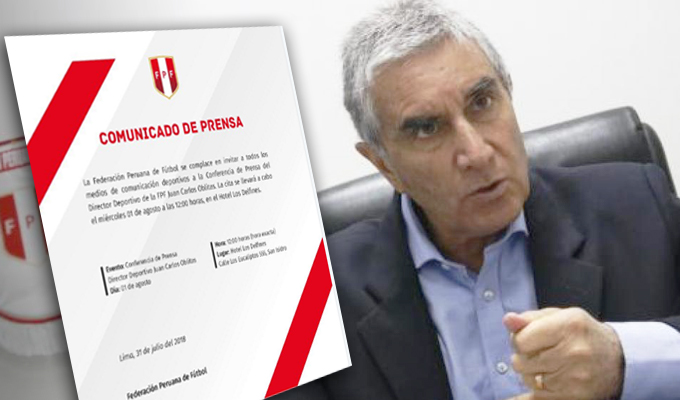 Oblitas anunció la conferencia de prensa para el mediodía en el Hotel Los Delfines a través de la cuenta oficial de Twitter de la Federación Peruana de Fútbol donde publicó un comunicado de prensa.